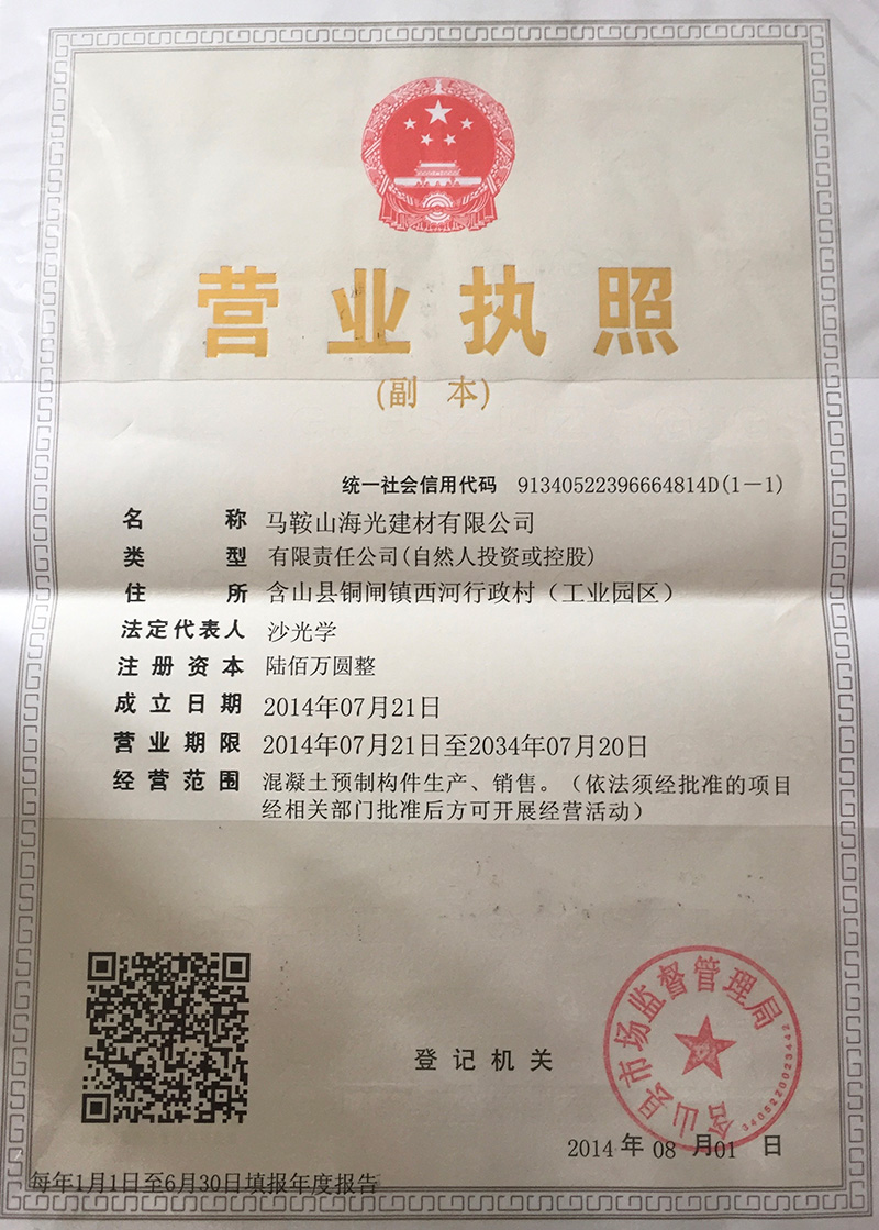 馬鞍山海光建材有限公司 版權(quán)所有 營(yíng)業(yè)執(zhí)照